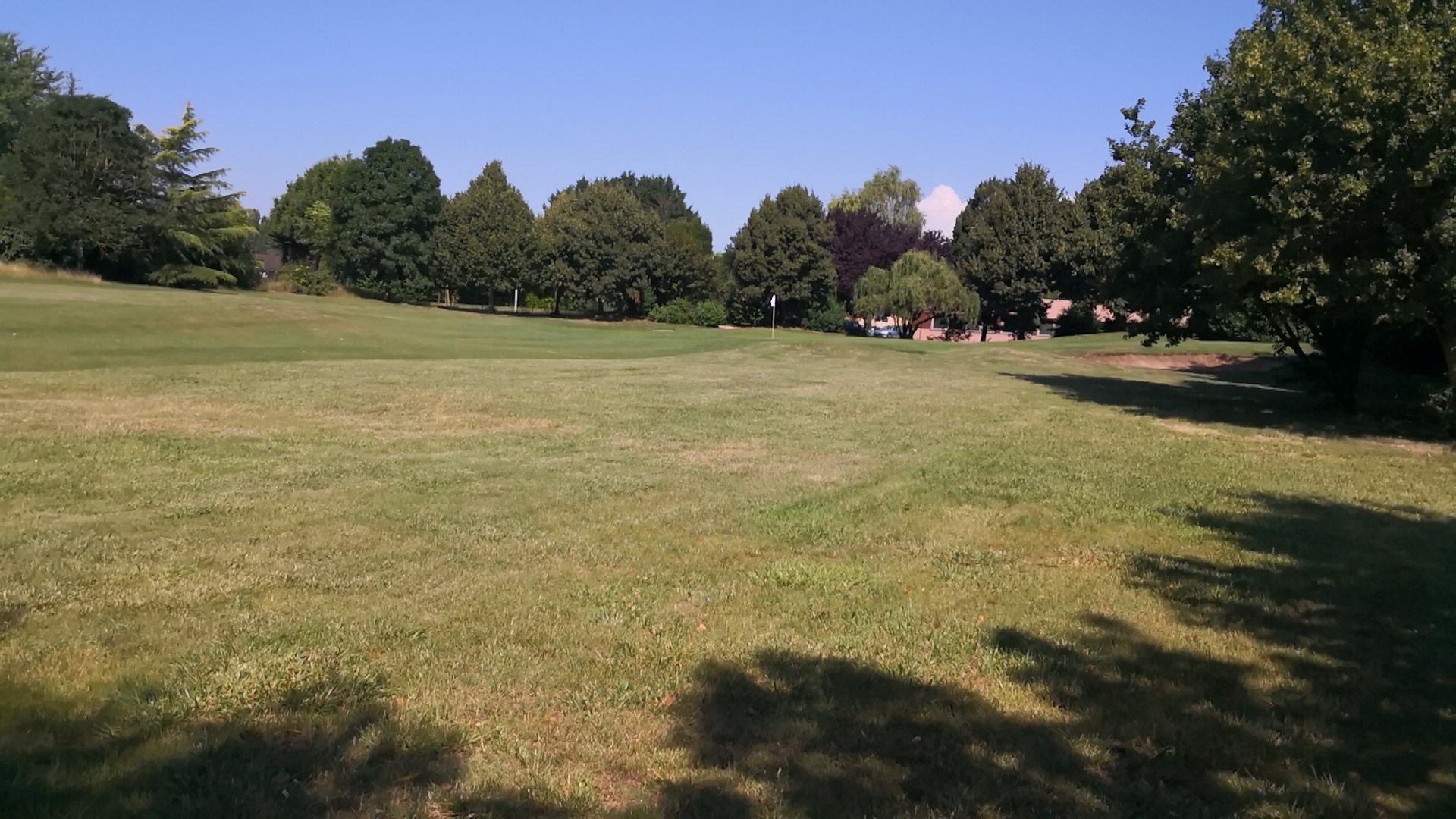 Golf qui a souffert de la sécheresse mais qui reste agréable s'y on fait abstraction du bruit provoqué par l'activité routière autour.